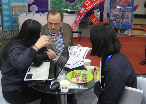 國(guó)外客戶向鐵拓機(jī)械工作人員咨詢?cè)O(shè)備